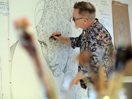 In his studio, he becomes a little boy again. Equally obsessed, equally ambitious. In perpetual pursuit of focus, tranquility and new creative paths and detours.