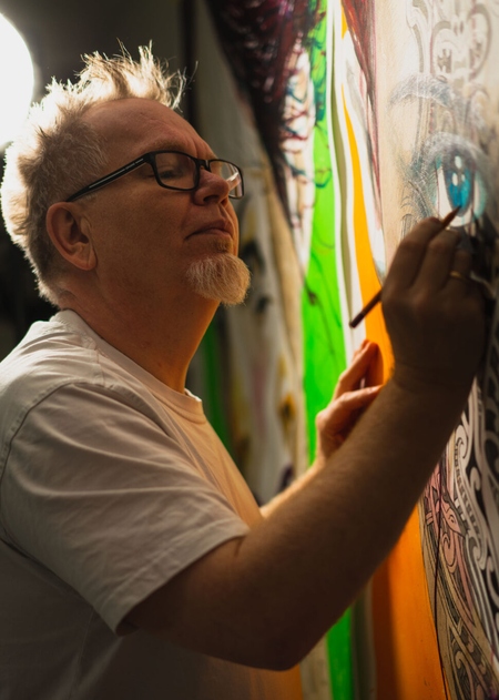 He learned to draw professionally, and his technical skills and creative talent earned him a comic book release and a job at a design studio, where he quickly advanced. More responsibility, more work, more money. But the dream of becoming a “real artist” – and escaping the commercial world of design – was always lurking, behind the impressive career and the financial success.